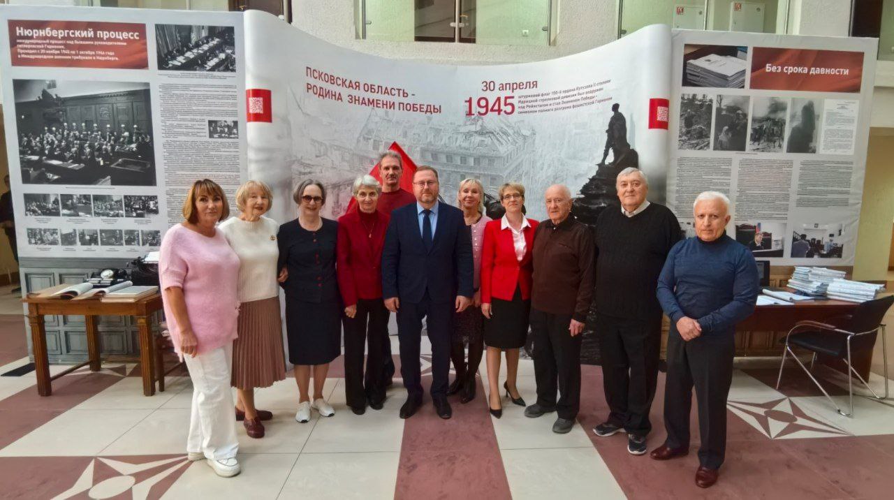 Гостям была представлена размещенная в холле суда экспозиция «Псковская область - Родина Знамени Победы», а также баннеры с фотографиями участников Великой Отечественной войны - судьями областного суда, родственниками судей и работников аппарата.